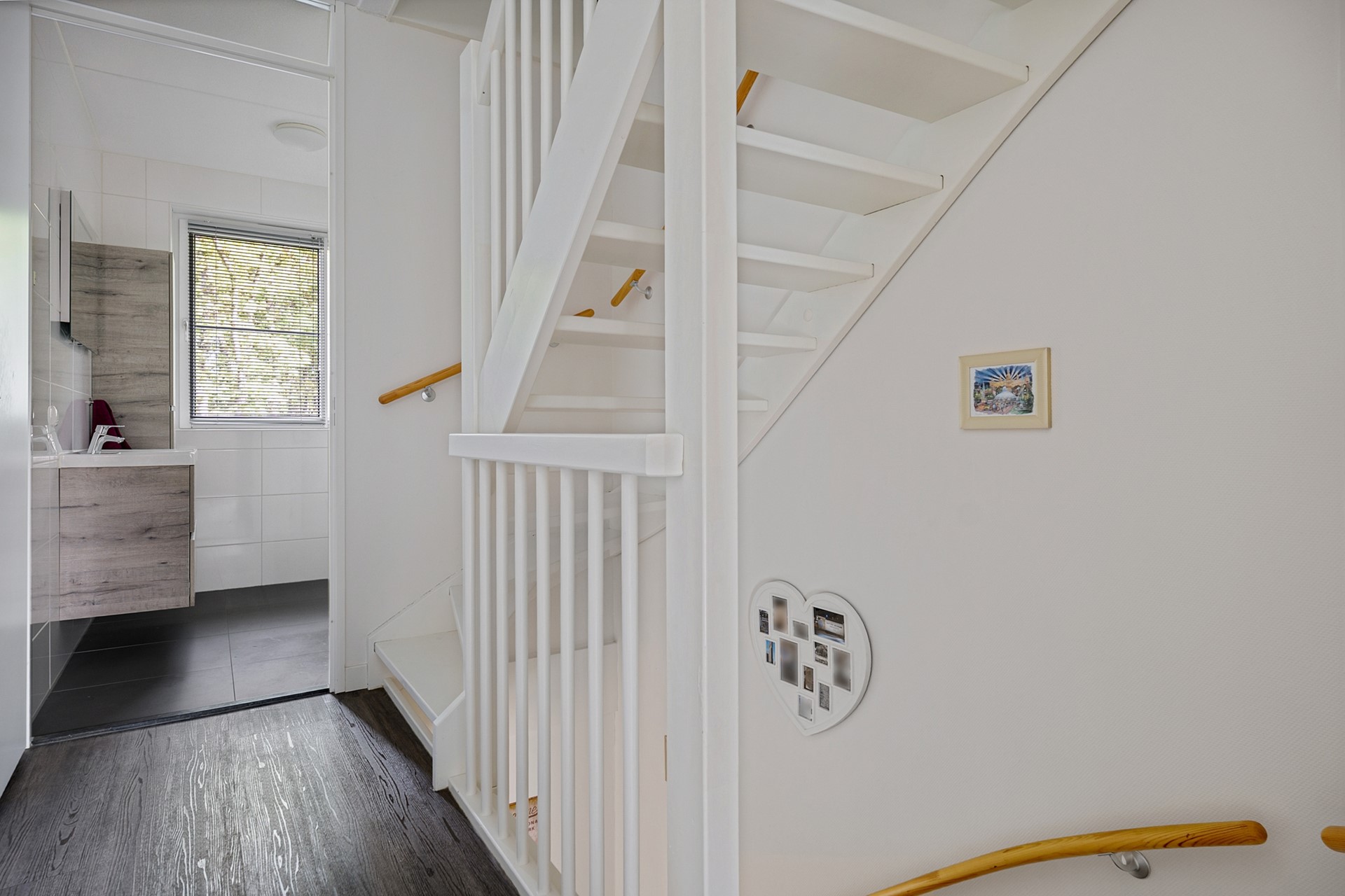 Via vaste trap naar ruime zolder met wasmachine aansluiting en daglicht via een kantelraam.
