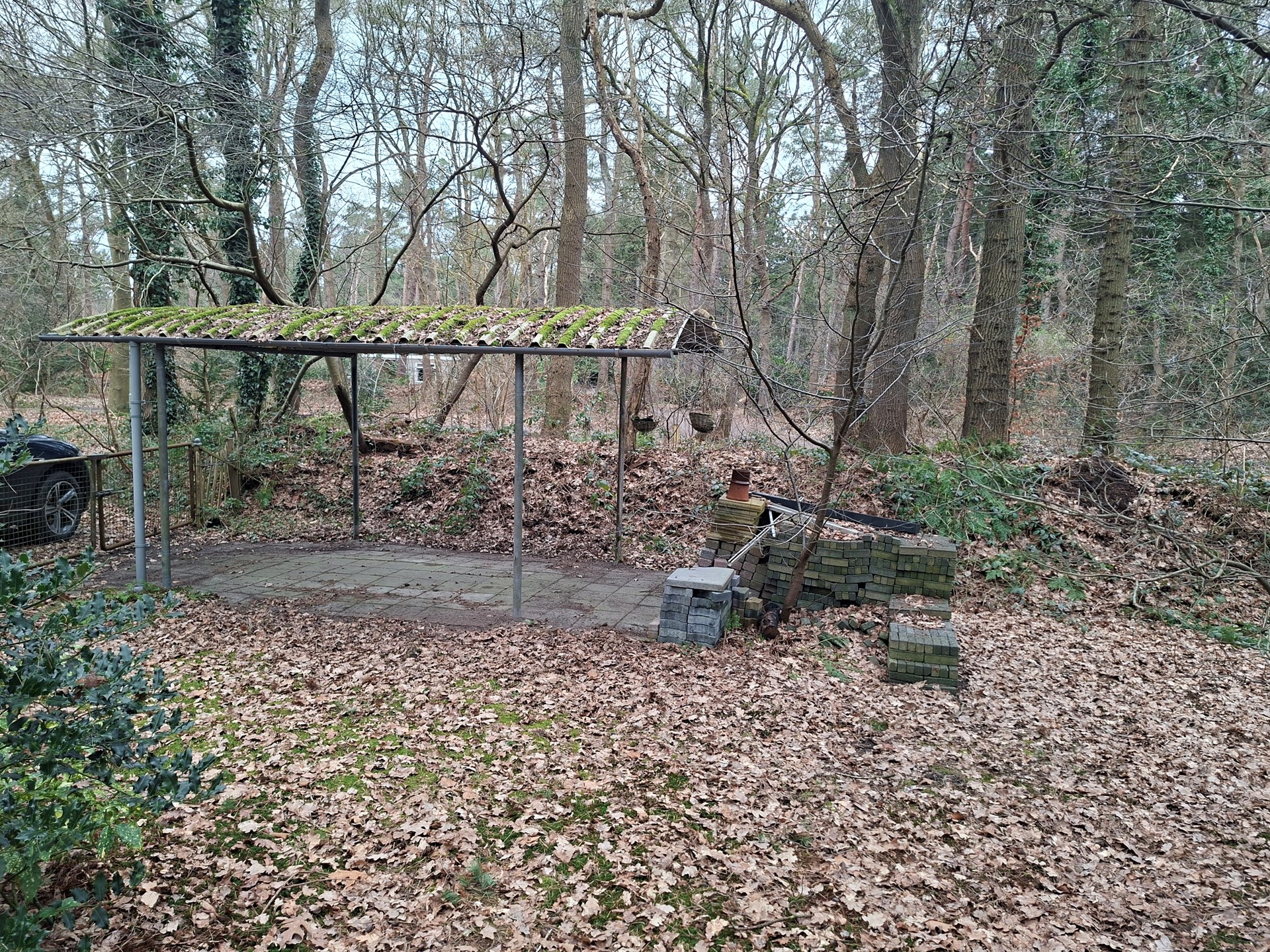 Carport voor het parkeren van een auto.